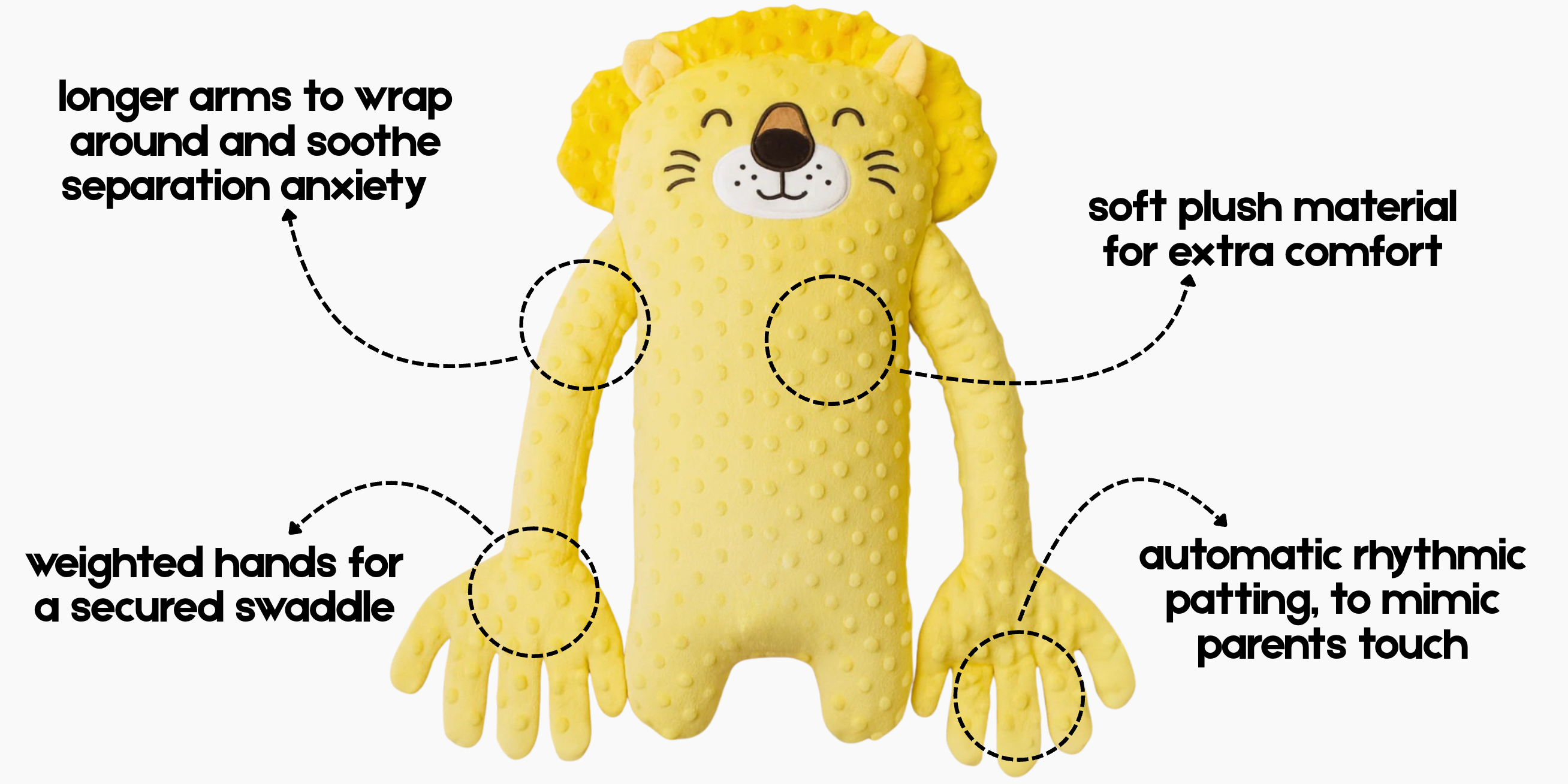 Helping babies develop healthy sleep habits can be one of the hardest parts of parenting, but the NapWrap makes it easier. By providing a consistent and familiar soothing experience—whether it’s the gentle patting, the comforting hug of the weighted arms, or the cozy plush fabric.